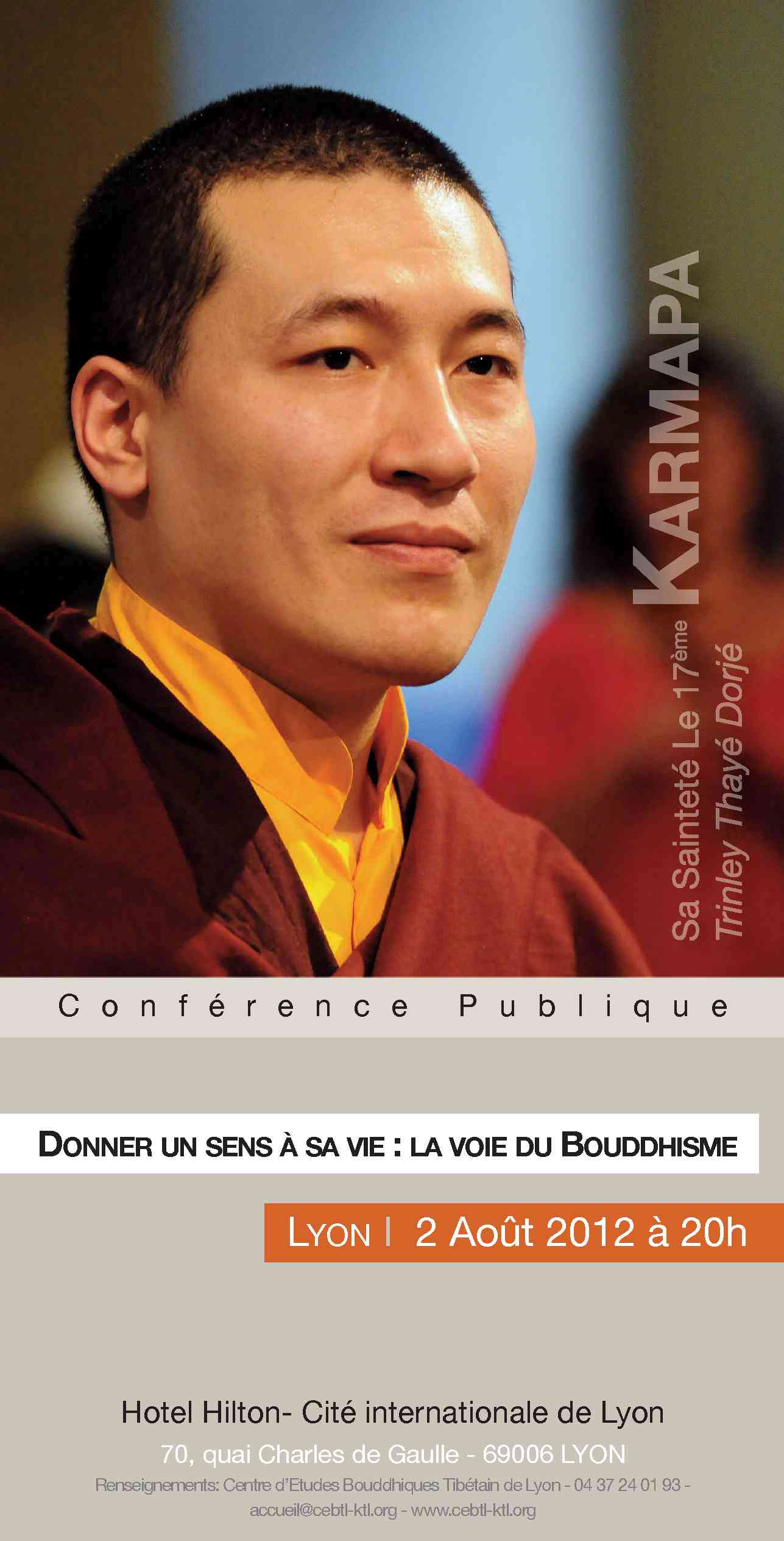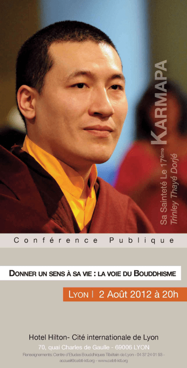 que le 17ème Gyalwa Karmapa Trinlay Thayé Dorjé*, détenteur de la lignée Karma Kagyu du Bouddhisme tibétain, tiendra une conférence publique: